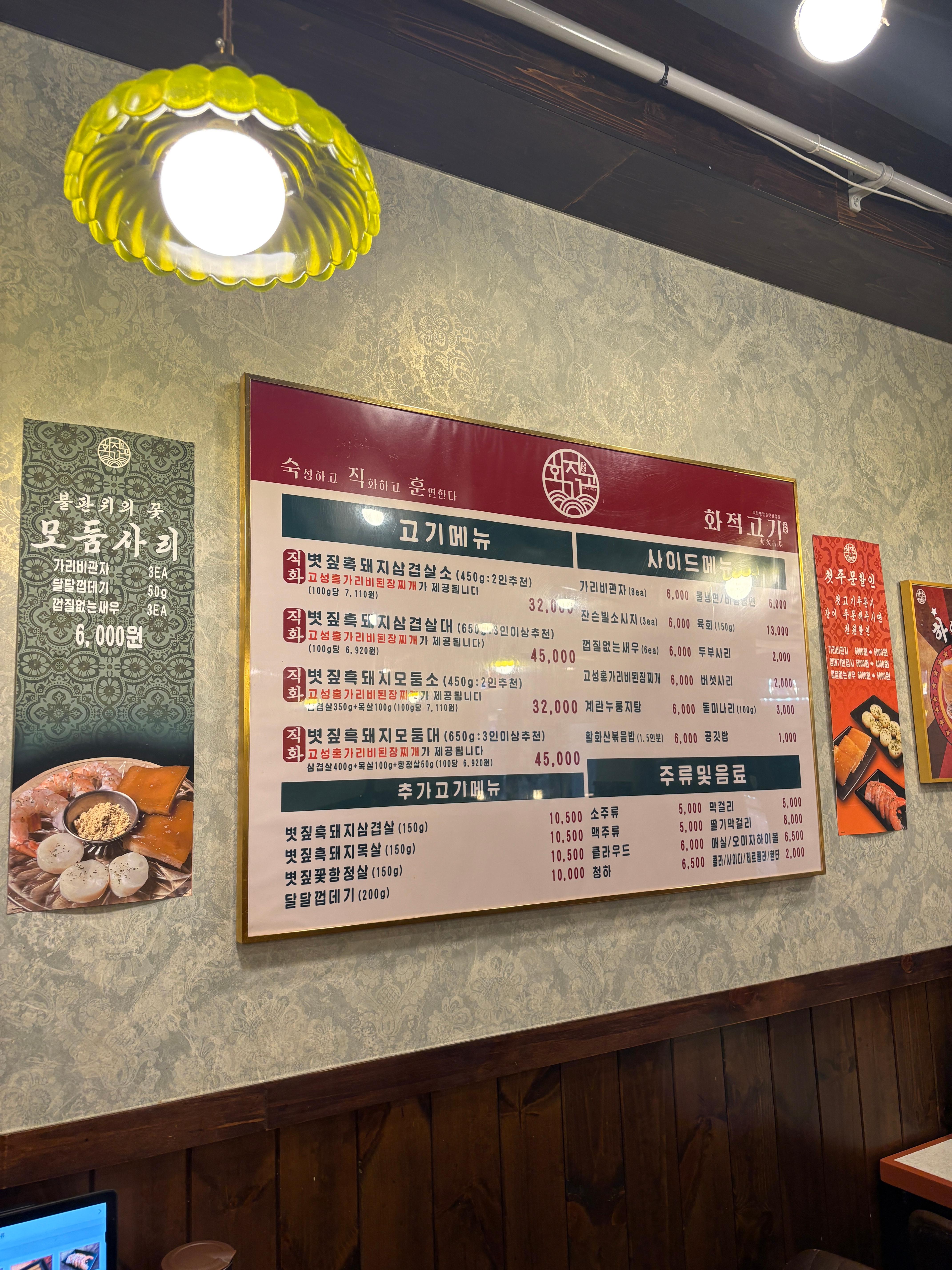 대표메뉴는 볏짚훈연삼겹살이 시그니처 메뉴다. 가격은 소. 중 이런 식으로 32,000원-45000원이다.