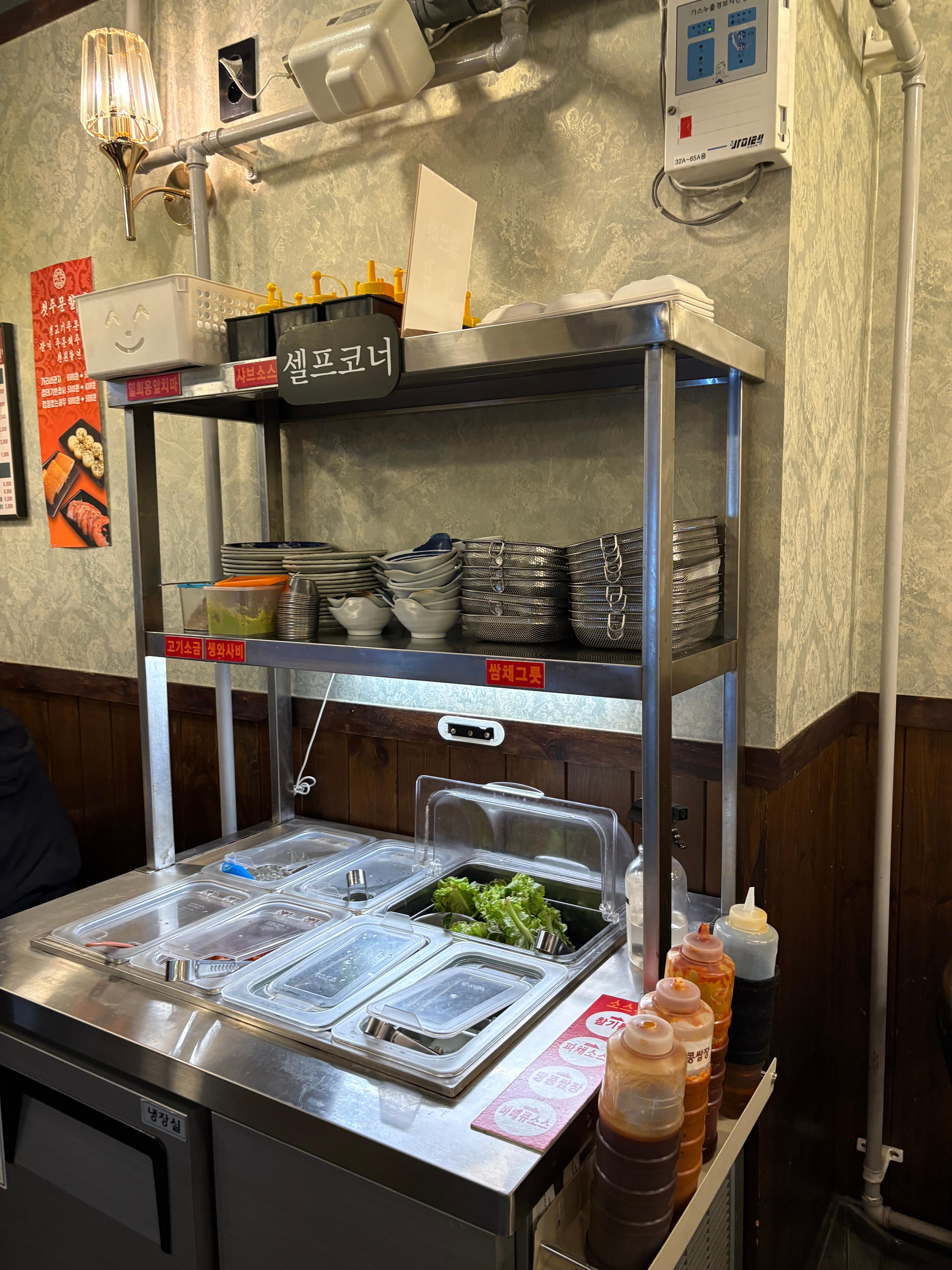 쌈채소, 반찬등은 셀프바로 운영된다.