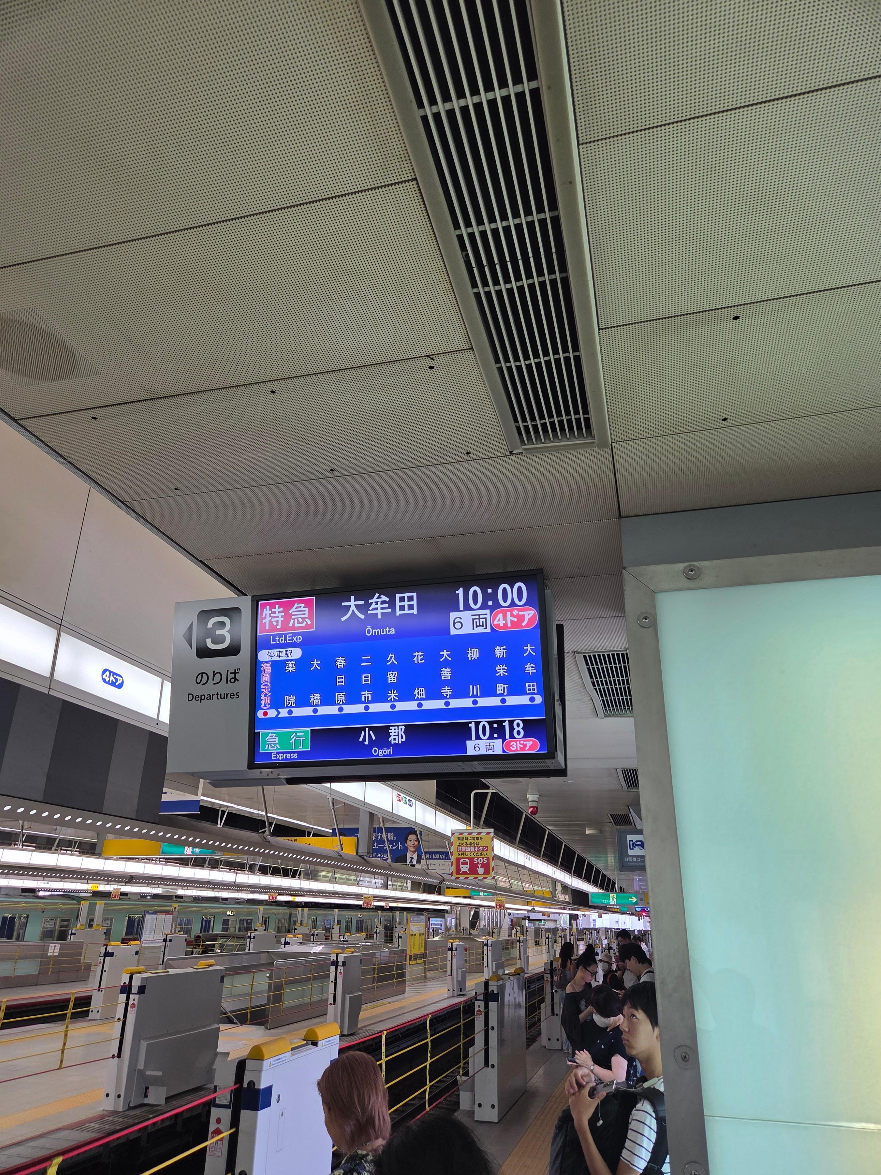 텐진역 3번 플렛폼 급행 omuta 행 열차에 올라 라!