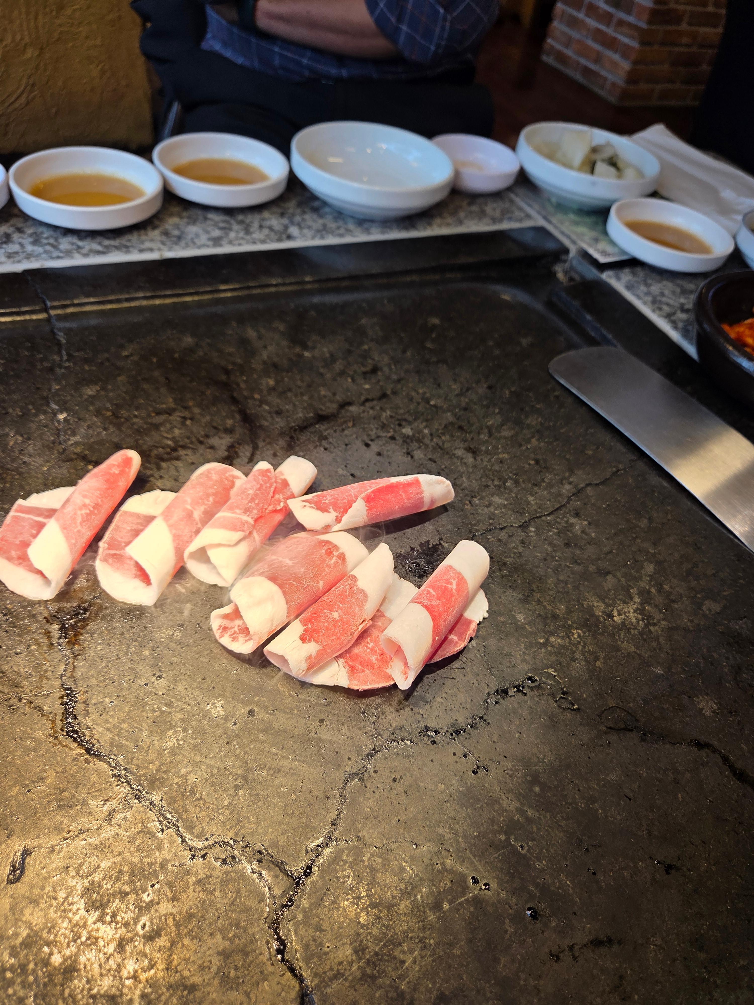 오리구이가 나오기 전에 차돌박이 먼저 달려본다.