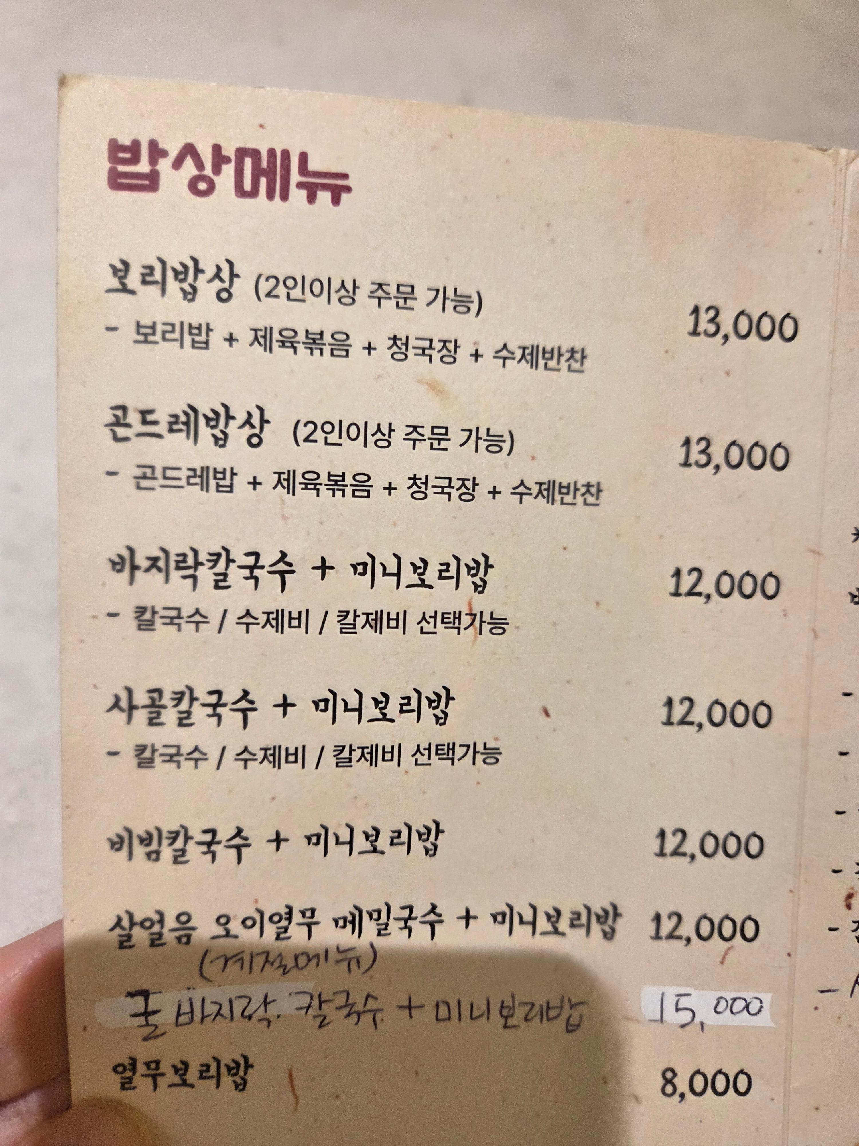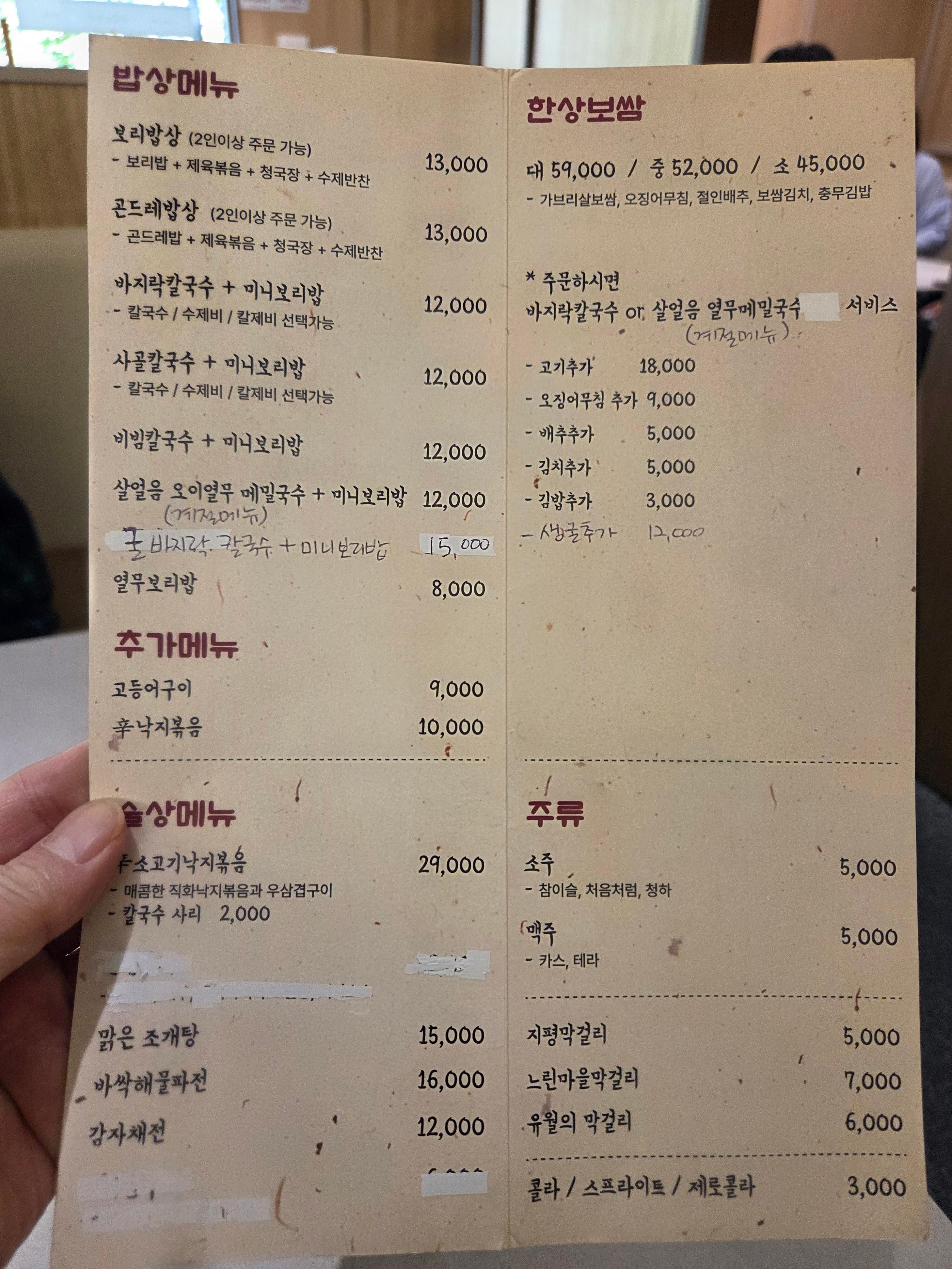 메뉴가 마음에 든다 보리밥,곤드레밥상,바지락칼국수,막걸리 등 식욕을 돋우는 메뉴다.