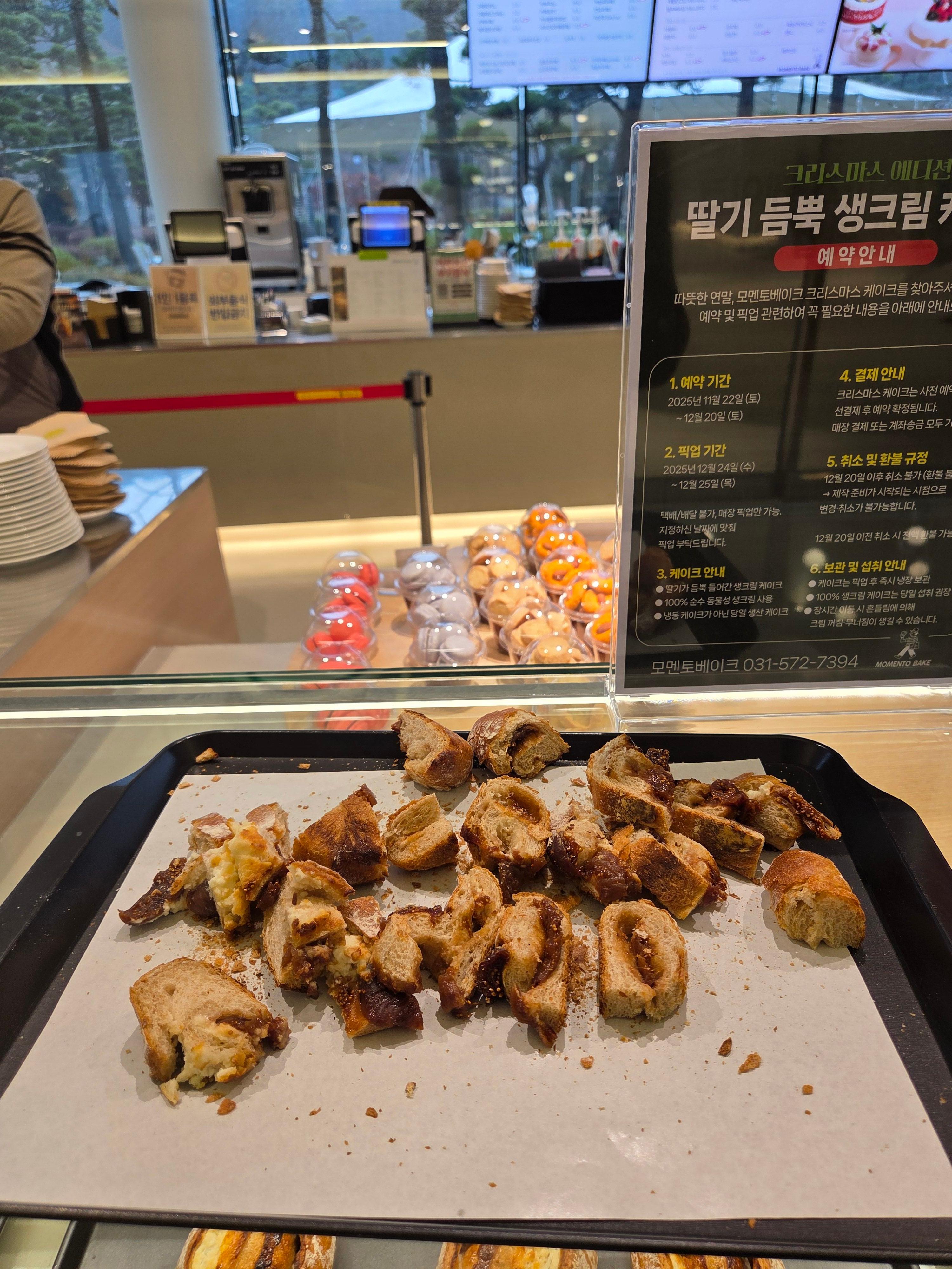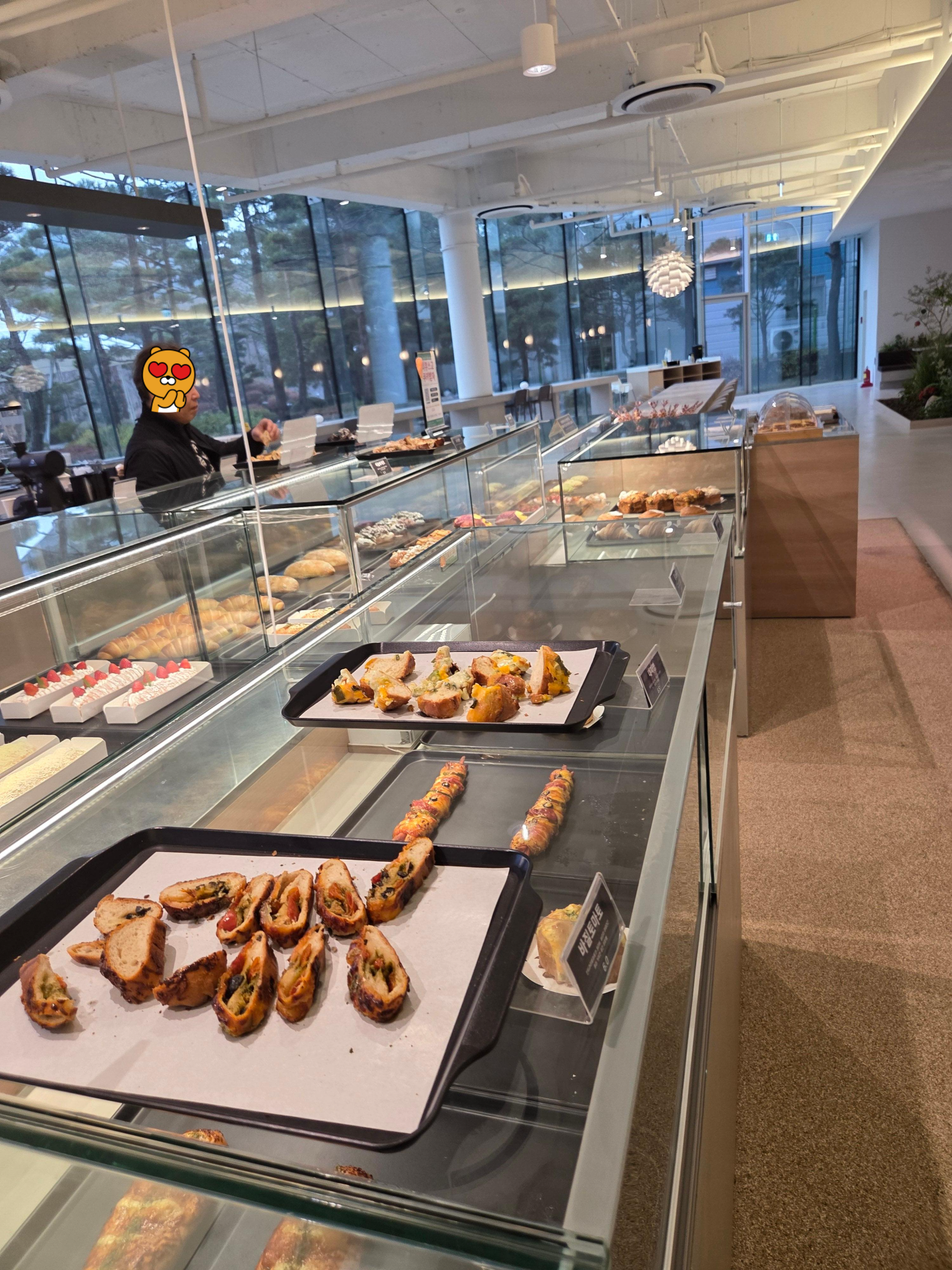 무슨 베이커리 카페가 시식용 빵이 많기도 하고, 크리도 하다.