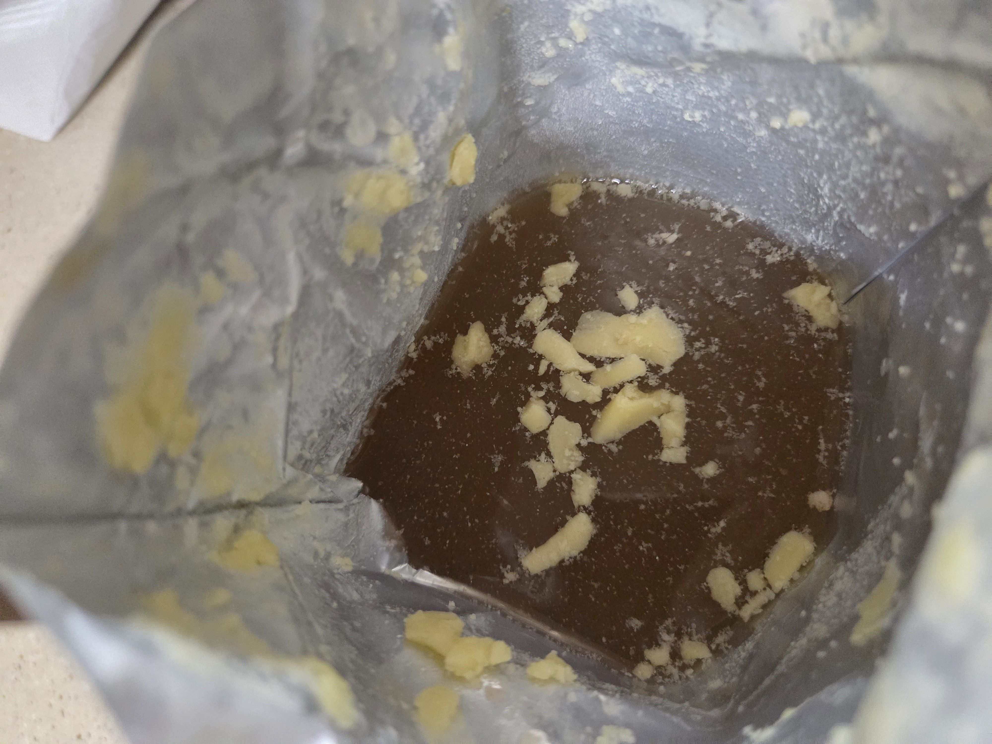 1개 봉투에서 나온 고기의 양이다. 아래 몇개 더 떨어져 있다. 실제로 세어보니 9조각이다. 크기는 제각각이다. 완전 사기극이란 생각이 드는 순간이다. 롯데 홈쇼핑시연에서는 이 정도 고기양이 세 그릇에 분명 담겼는데...