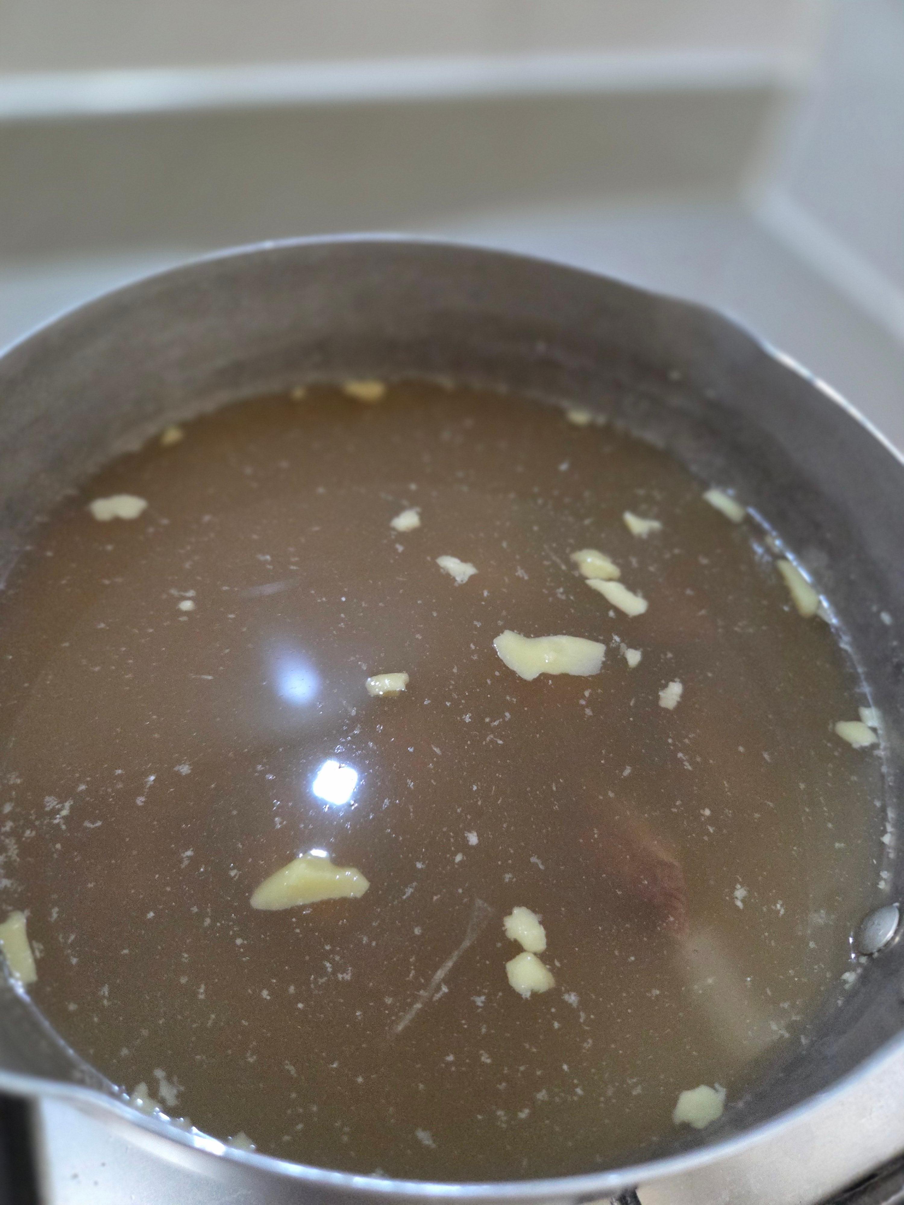사진은 한개봉투를 뜯어서 냄비에 담은 모습이다. 롯데홈쇼핑 시연은 분명 3개의 가락국수그릇 같은 곳에 고기가 수북이 담기는 시연을 가족들 앞에서 분명히 했기에 그 고기의 양을 당연히 기억한다. 지금은 다시 그 영상 보고 싶다.