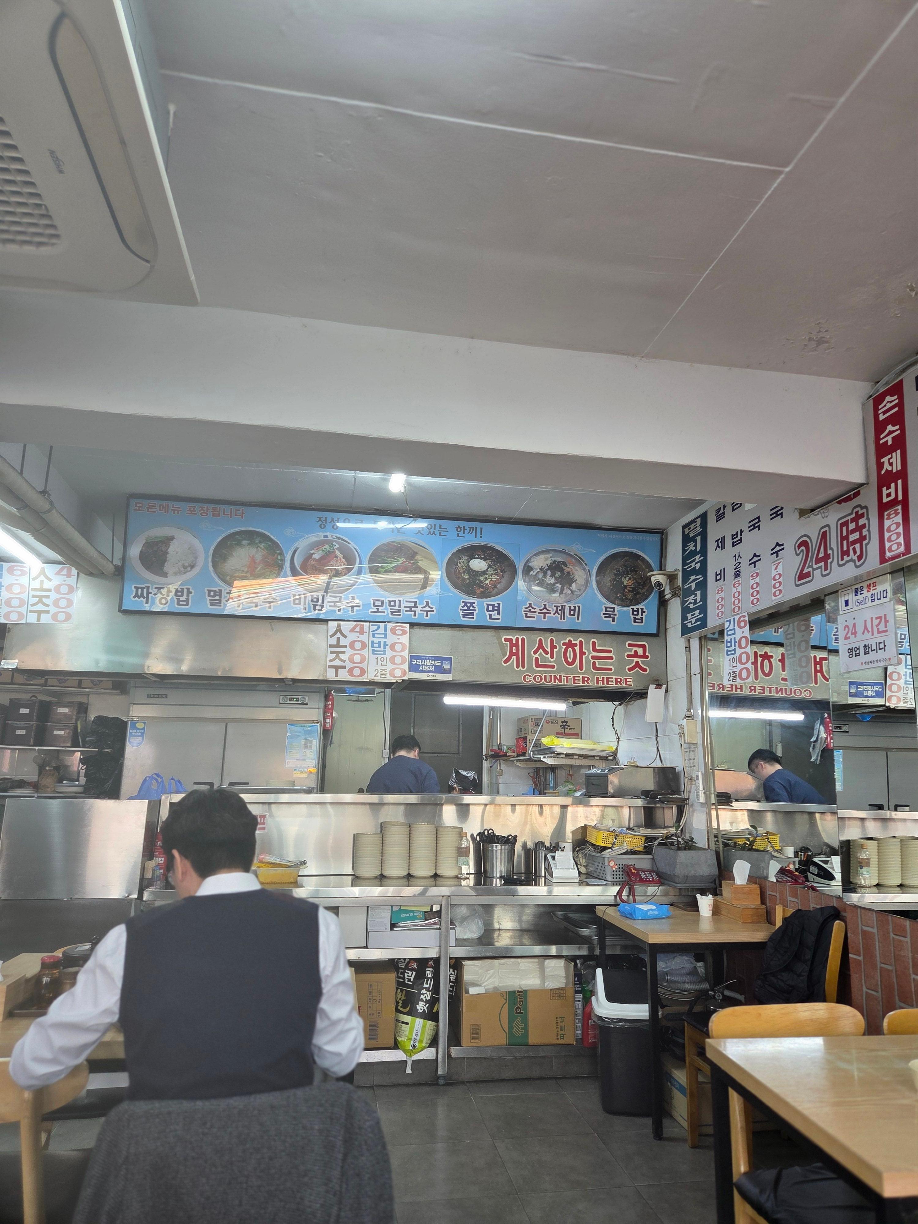 오늘은 멸치국수전문, 옛날짜장이라는 간판에 이끌려 들어간 집이다. 메뉴가 종류가 많은 분식집 같은 그런 느낌이다.