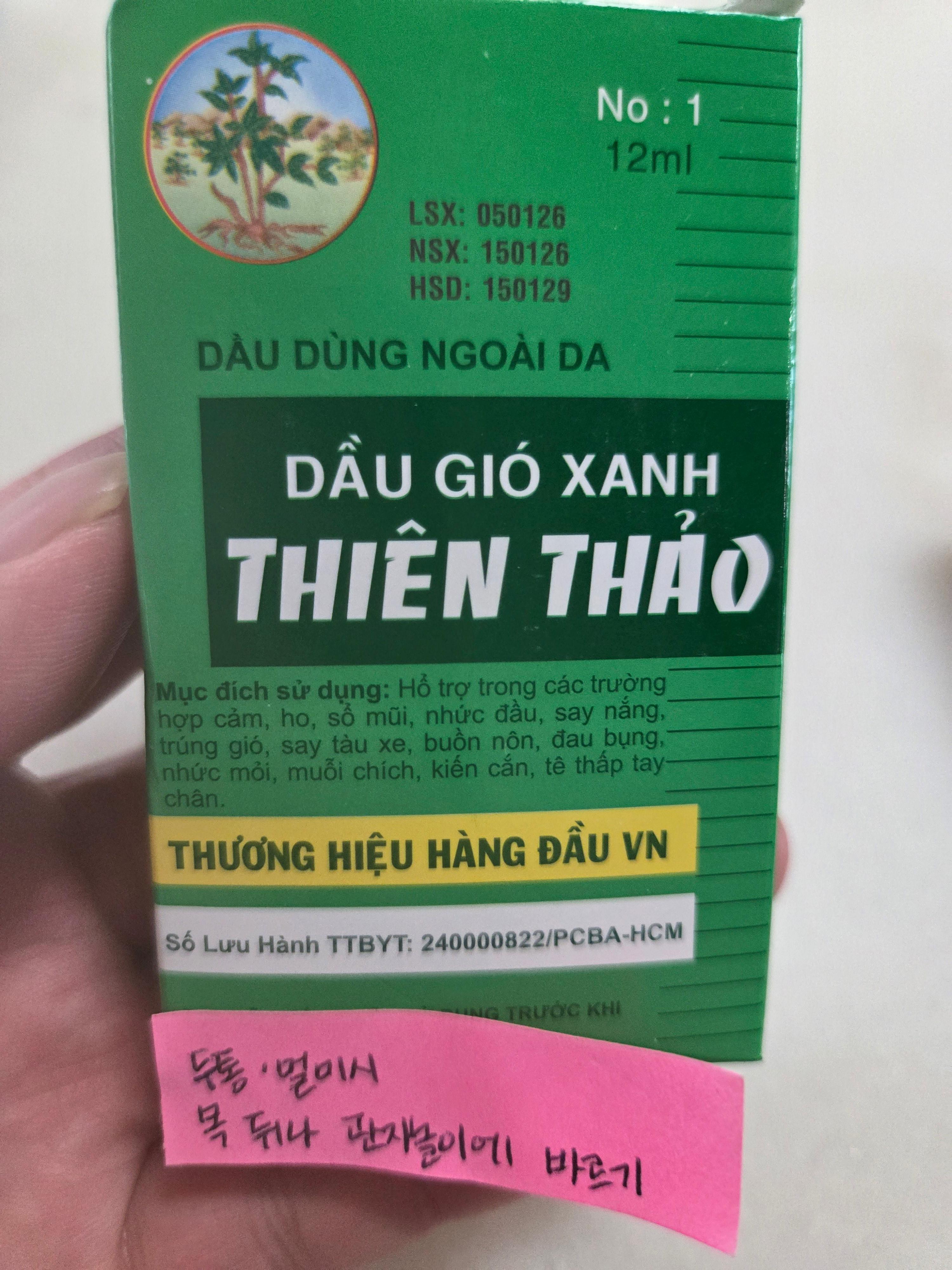 요건 동남아 여행에서 자주 보는 제품이지만 핫한 제품이다. 품귀현상까지... 두통 멀미 시 목뒤나 관자놀에 바르는 것인데, 바르면 시원하며 약효가 나타난다. 이거 역시 최고의 인기 선물이다.