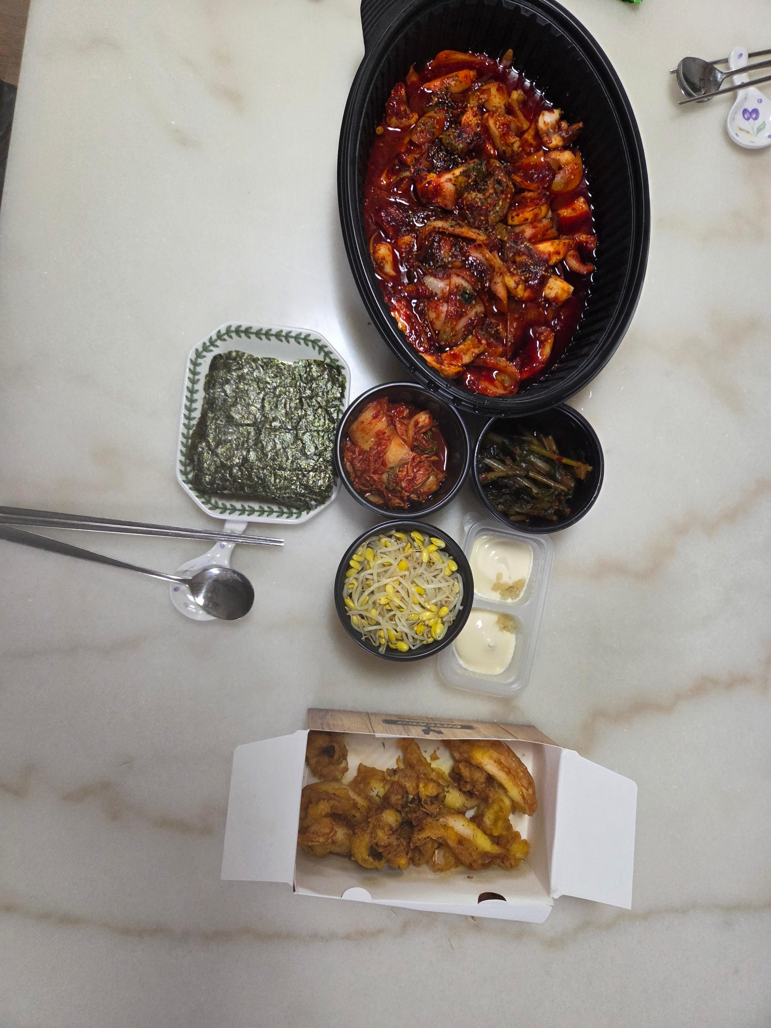 별내 신도시 갑오징어 요리가 메인인 이 집에서 갑오징어 불고기와 갑오징어 튀김을 방문포장 했다.