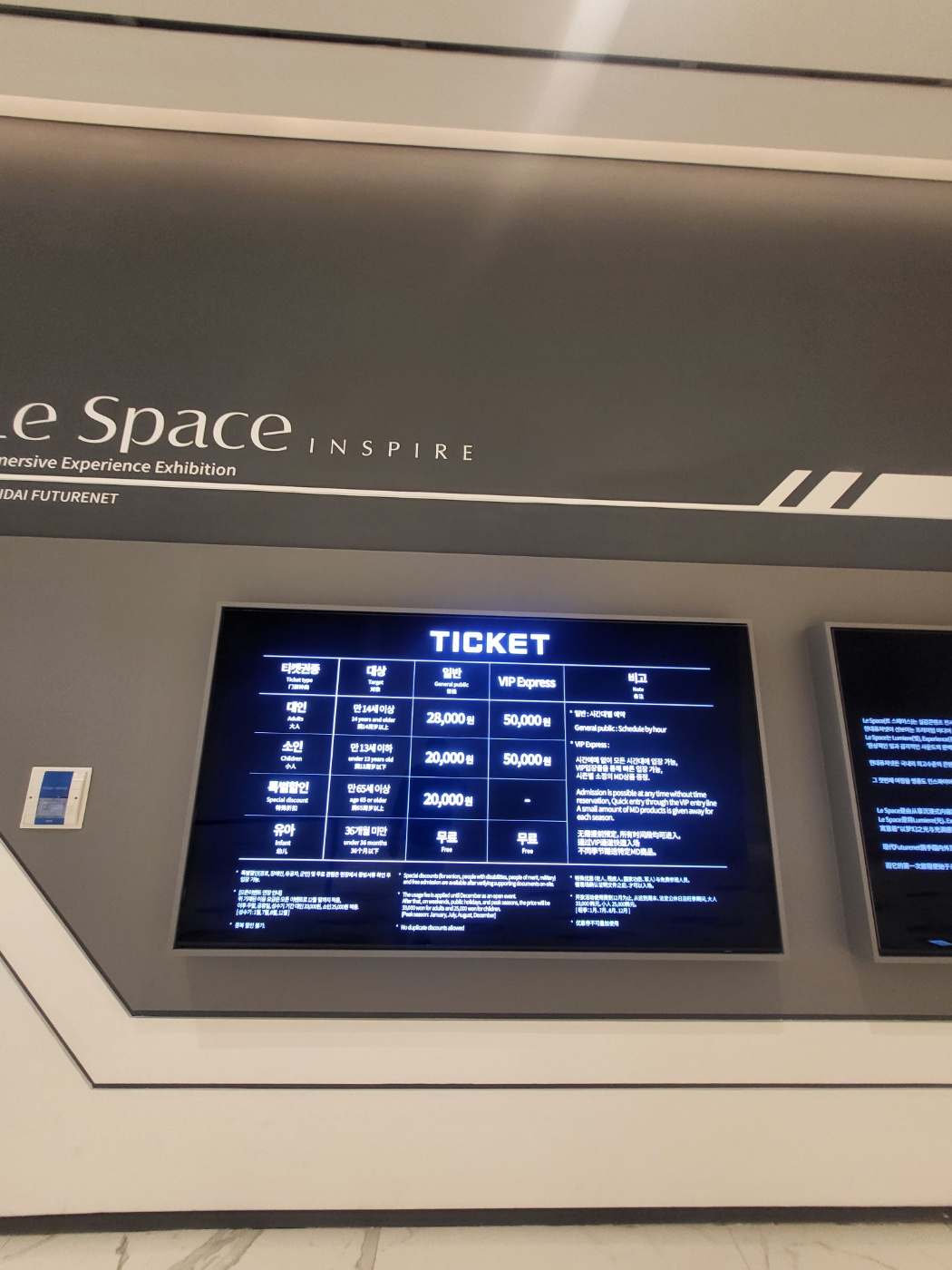 유료시설 중에 한 곳인 르 스페이스다. 우주의 신비한 세계를 보여준다.
