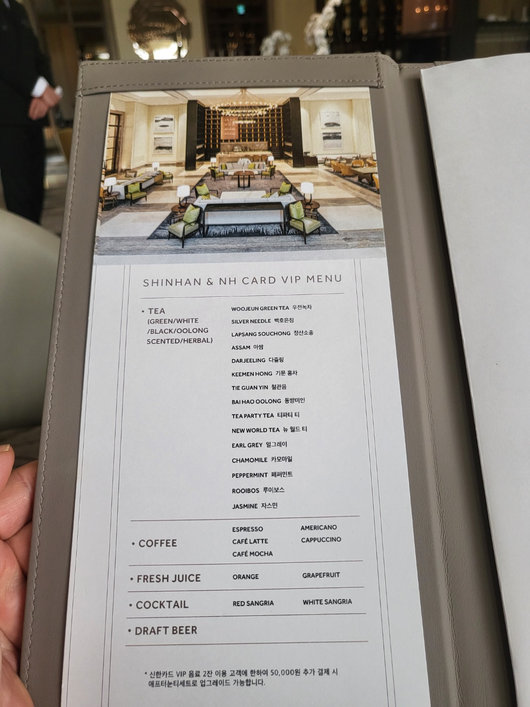 그리고 호텔라운지 커피숍에서 커피두잔을 신용카드로 무료로 2잔 가능하다.