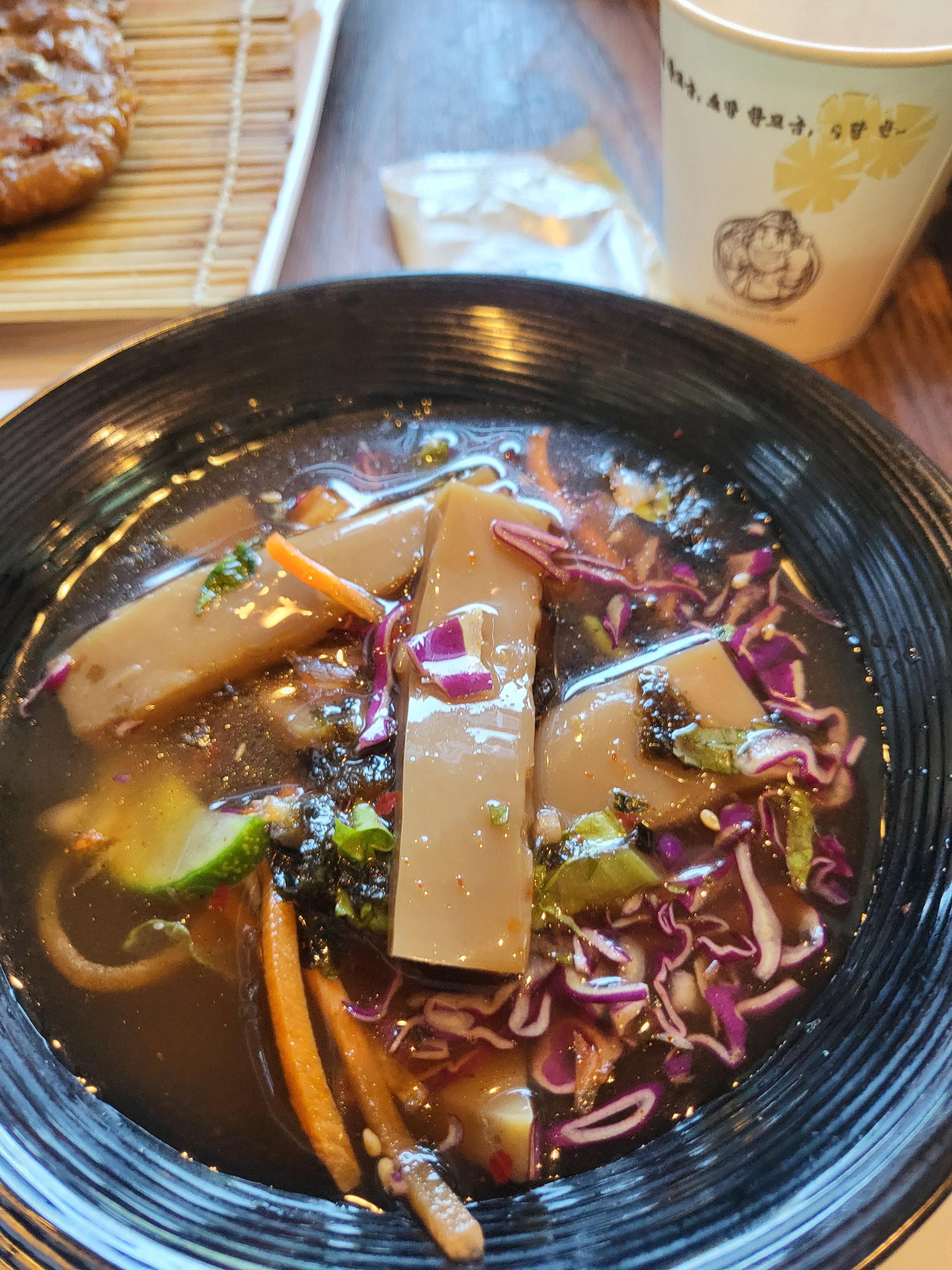 이 집의 특징은 일단 음식맛이 괜찮다. 특히 맨 처음에 나오는 샐러드와 도토리전이다.