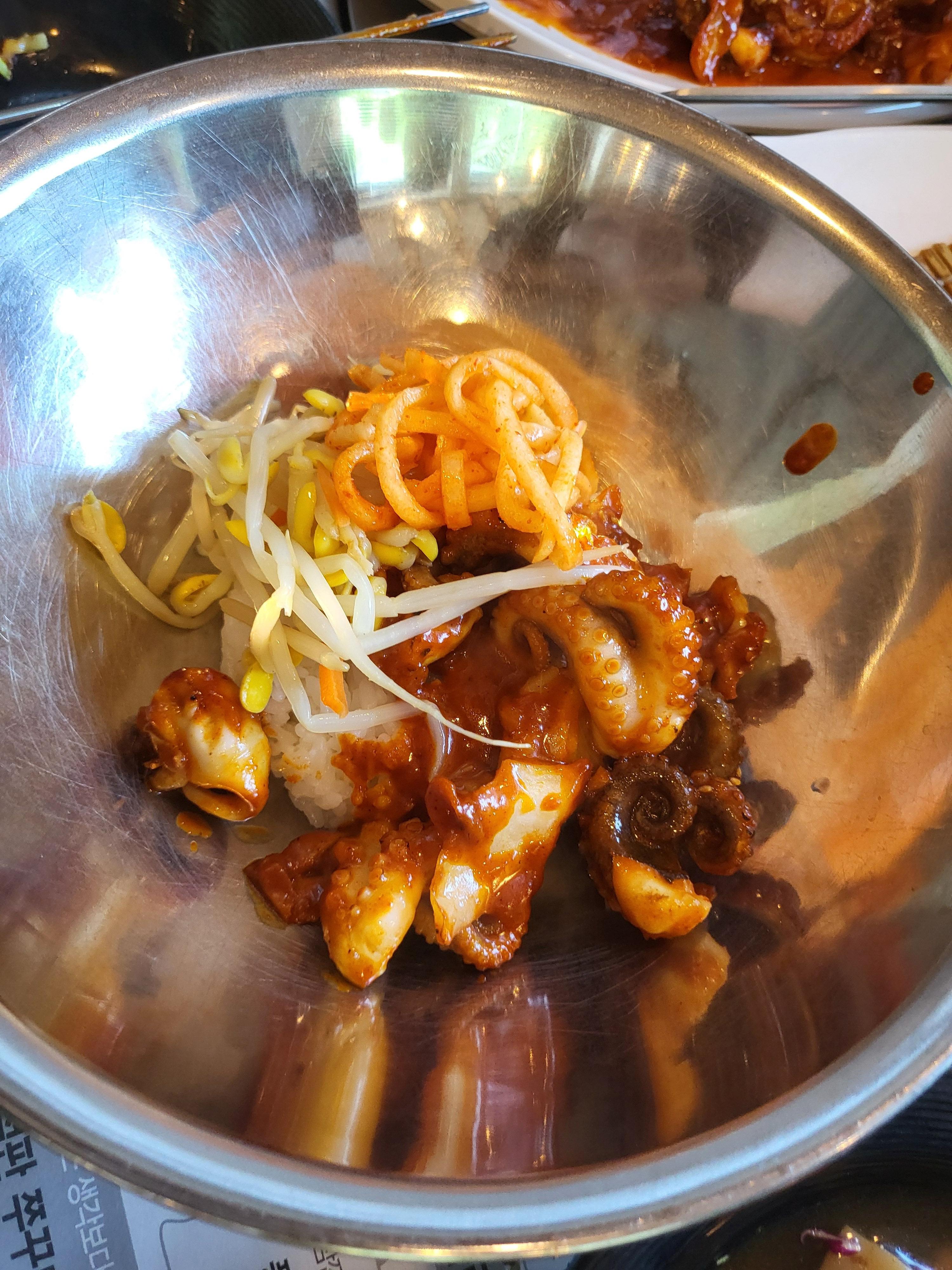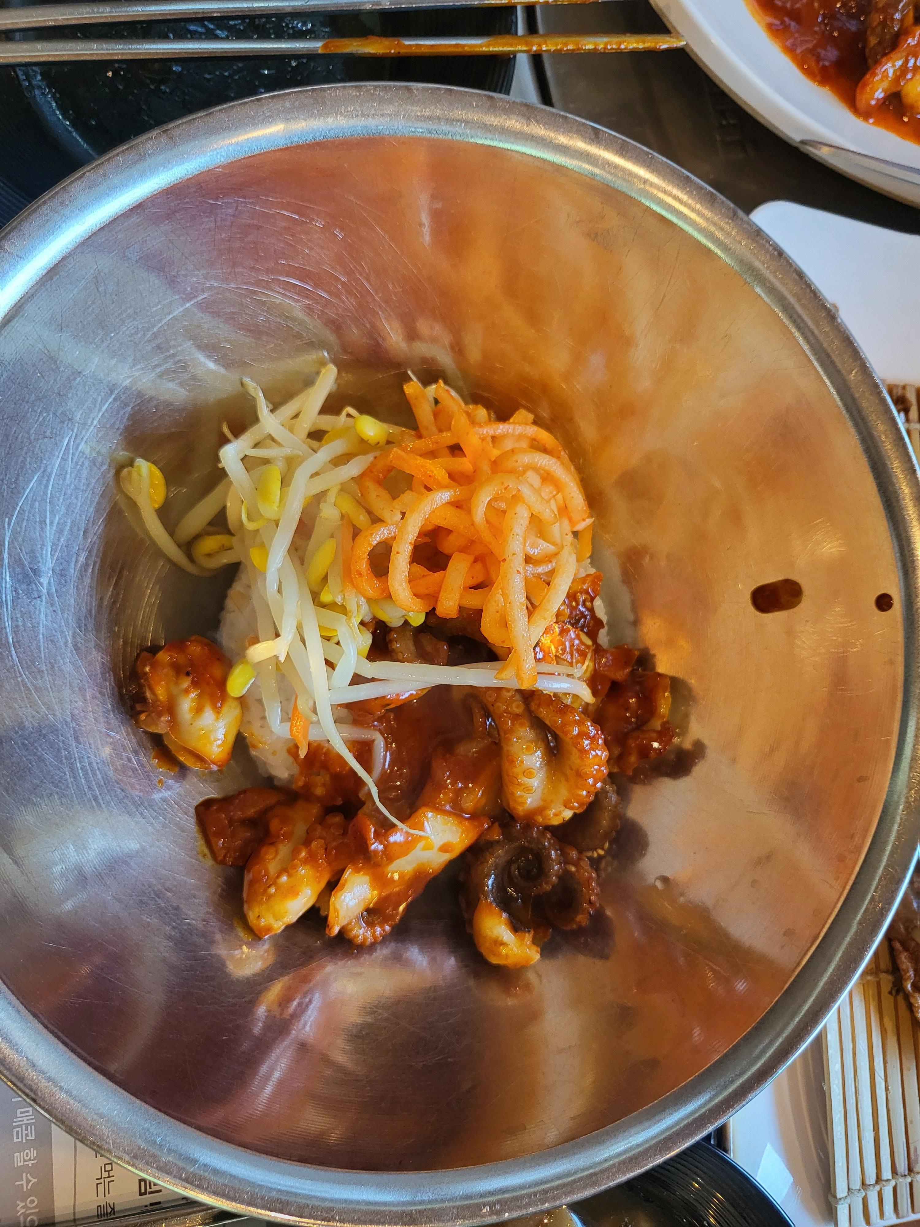 이 집은 과식을 부르는 집이다. 주 메인은 양푼에 나오는 밥을 비벼서 먹는 비빔밥 형식으로 되어 있다.