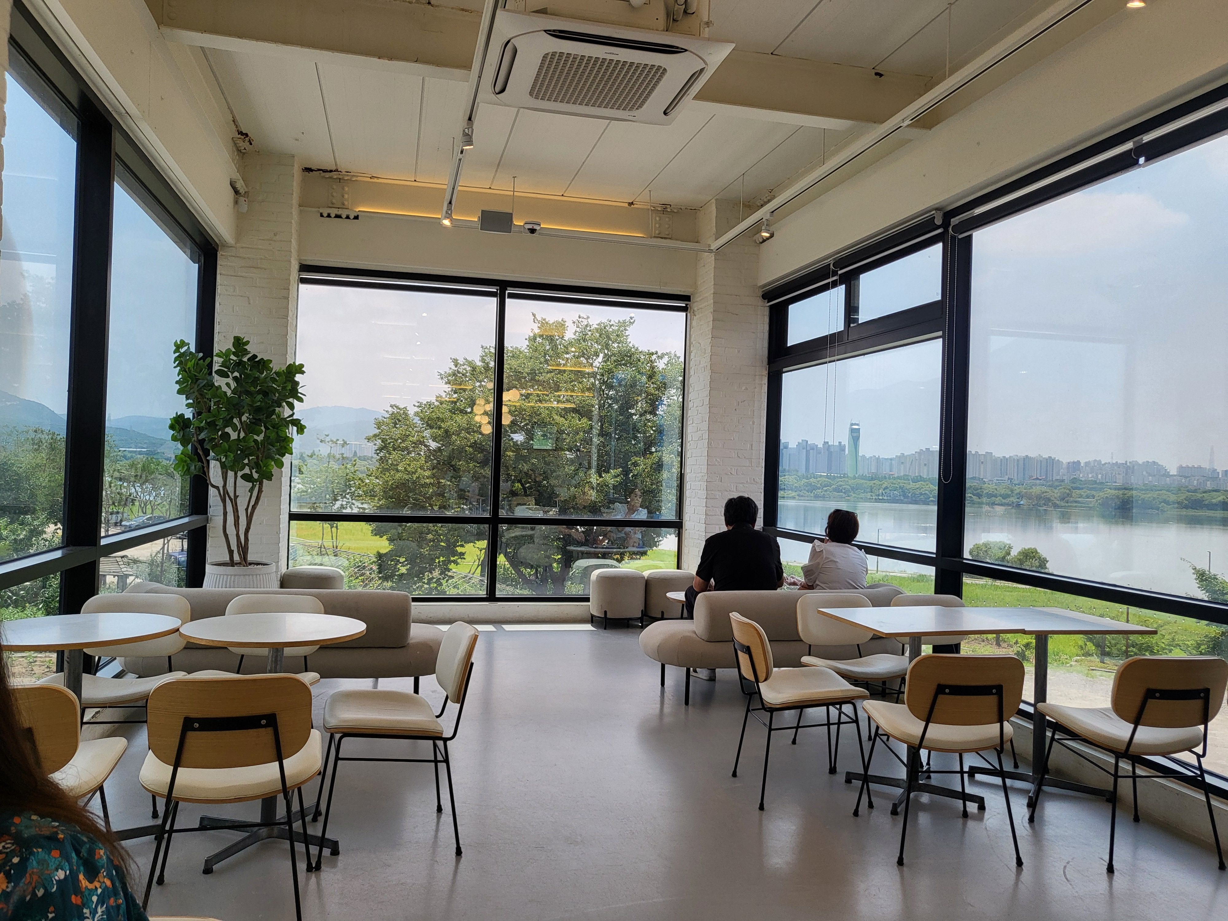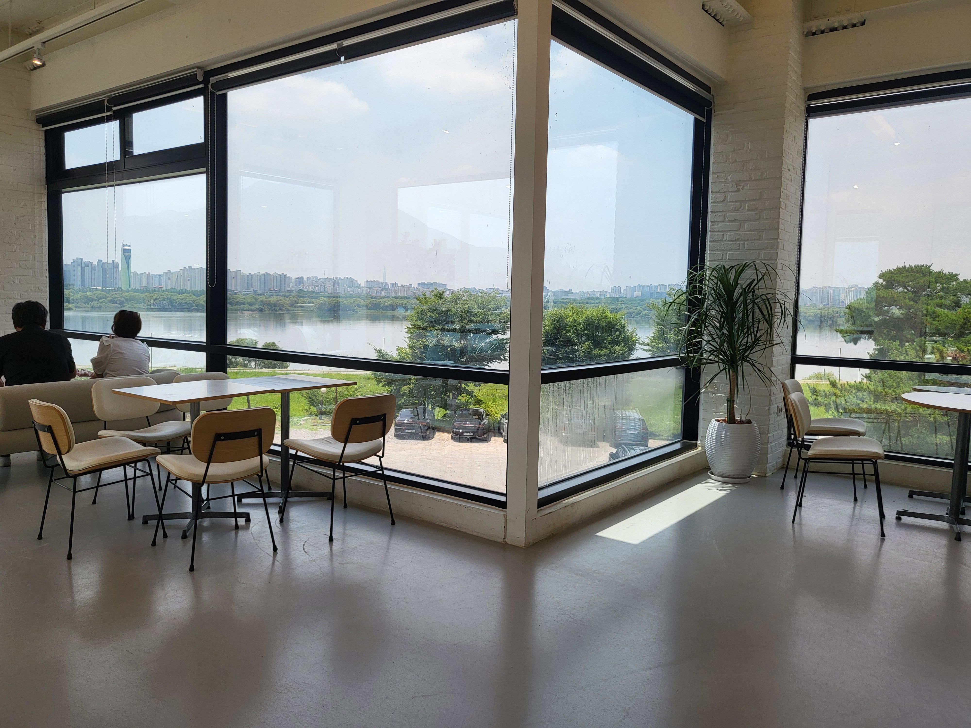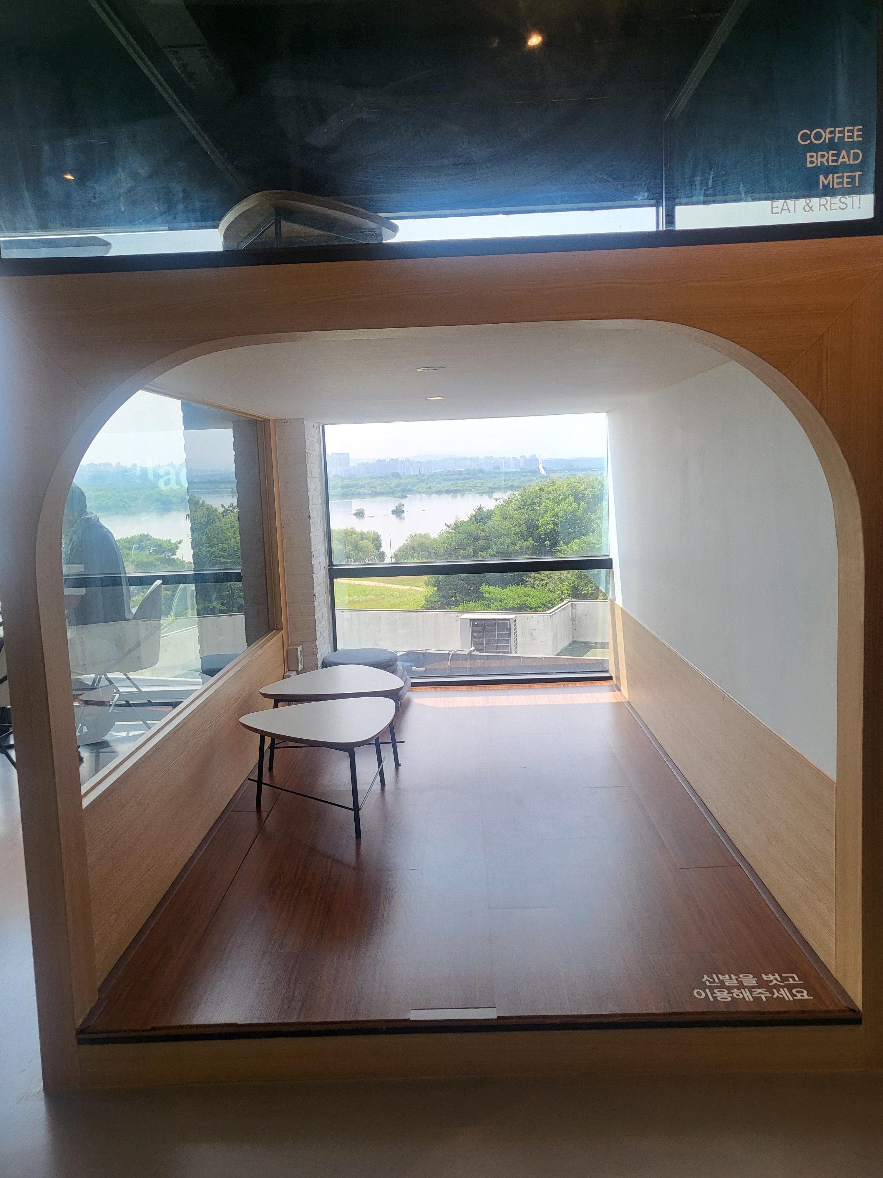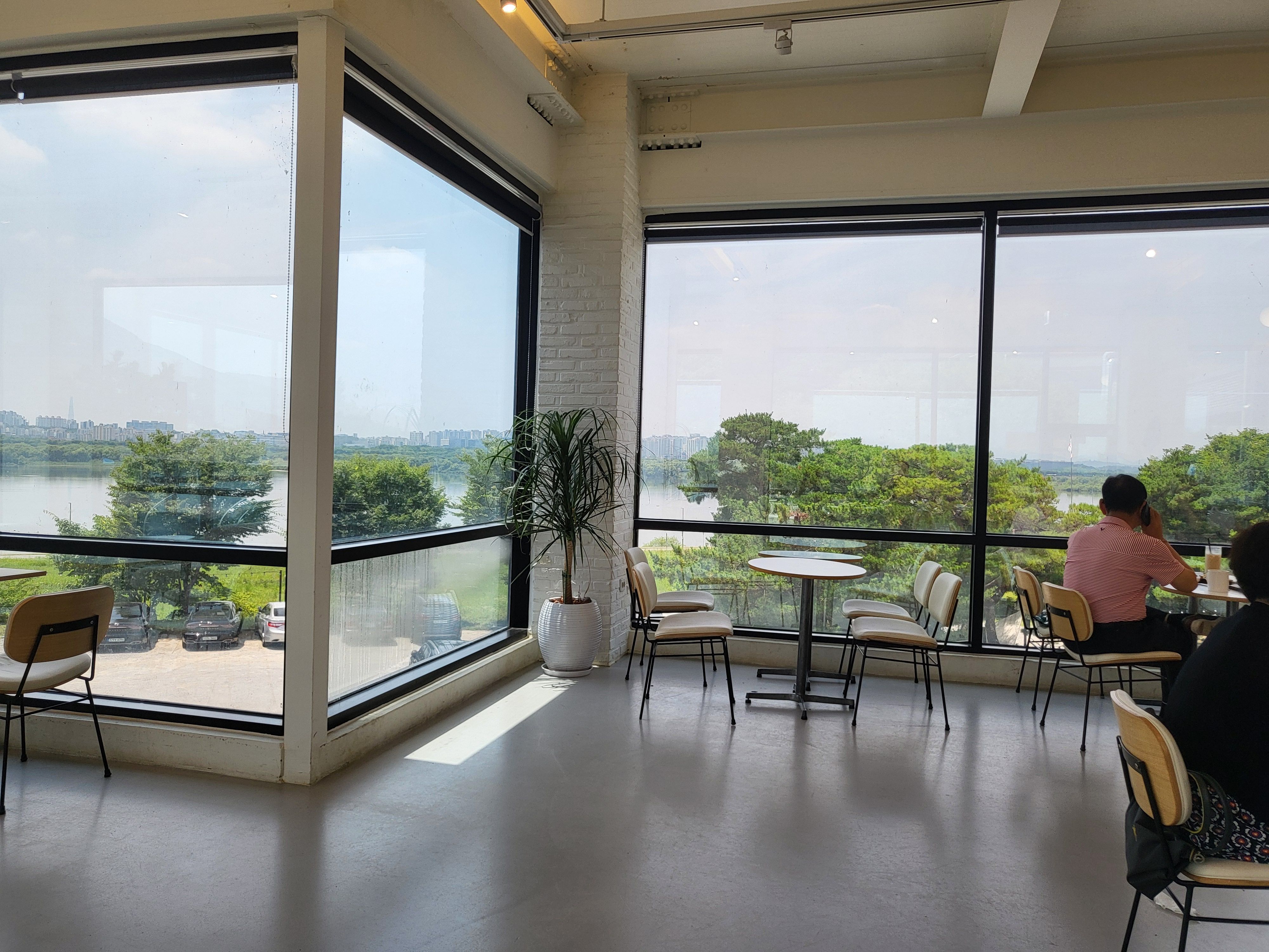 한강뷰도 아주 가깝지는 않지만 멋지게 보인다. 그러나 경쟁이 되는 멋진 카페들이 한강, 북한강, 남한강변에 많이 있기에 그곳에 비하면 경쟁력이 떨어진다는 뜻이다.